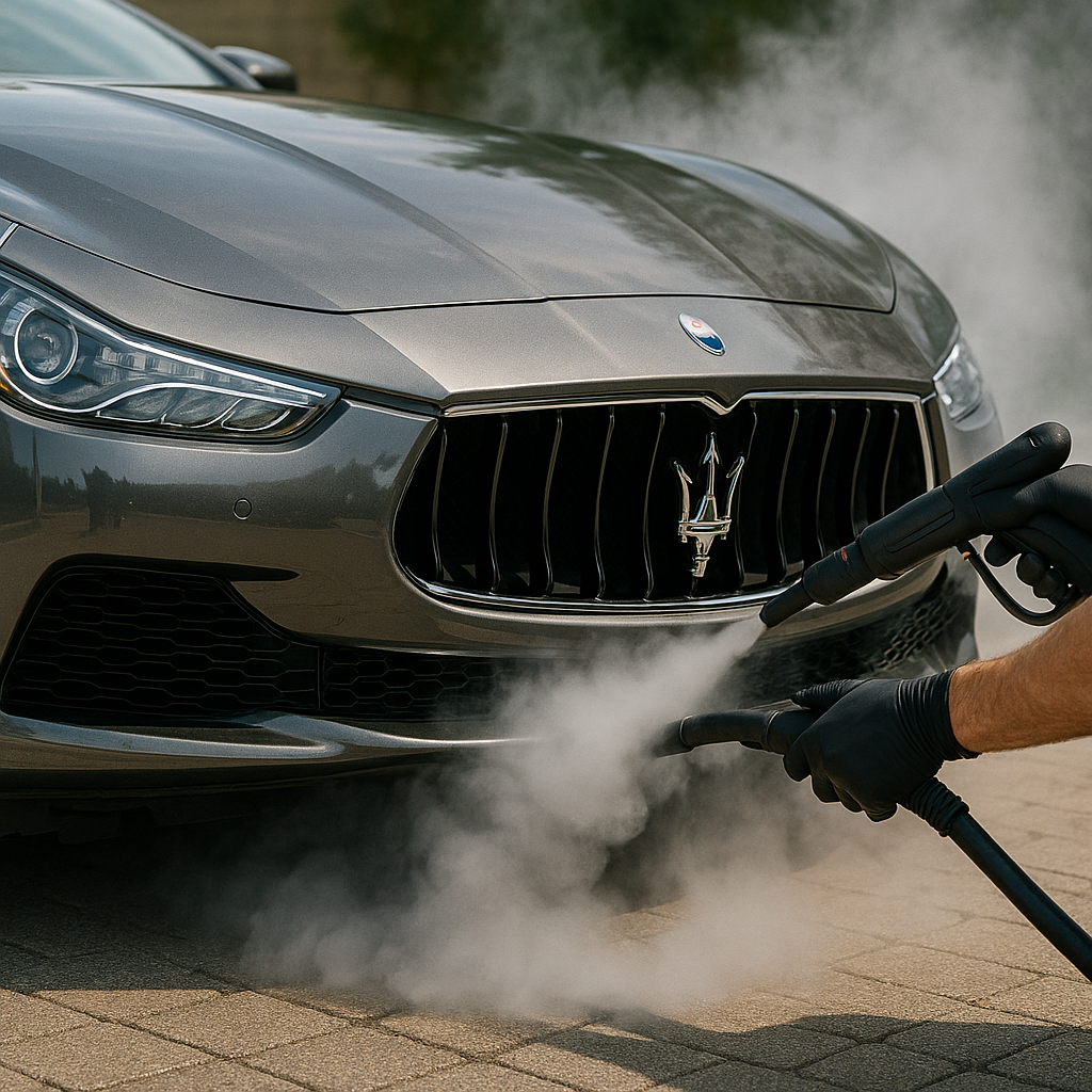 Streifenfreie Sicht dank dampfbasierter Glasreinigung – ganz ohne Rückstände. - Insekten-, Harz- & Vogelkotentfernung